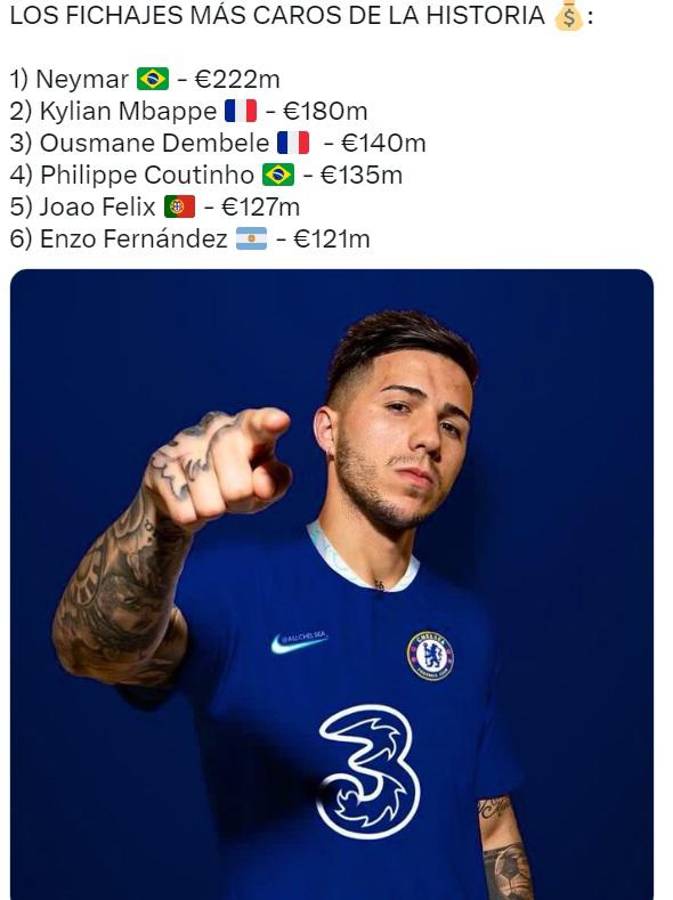12 / 12Enzo Fernández quedó en el puesto seis de los futbolistas más caros de la historia.