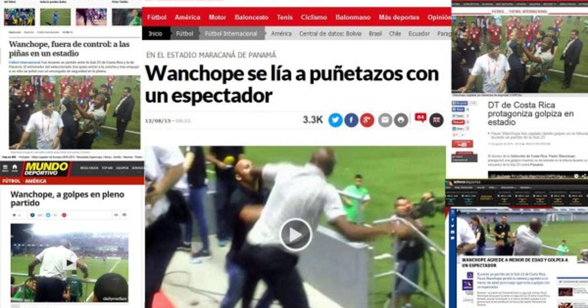 12 / 16TV Azteca de México: La presión en Concacaf cobró su segunda víctima. Paulo Wanchope enloqueció durante un juego de Sub-23 entre Costa Rica y Panamá, al grado de empujar a un menor de edad y golpear a una persona que se encontraba en la tribuna del estadio Maracaná de Panamá. -