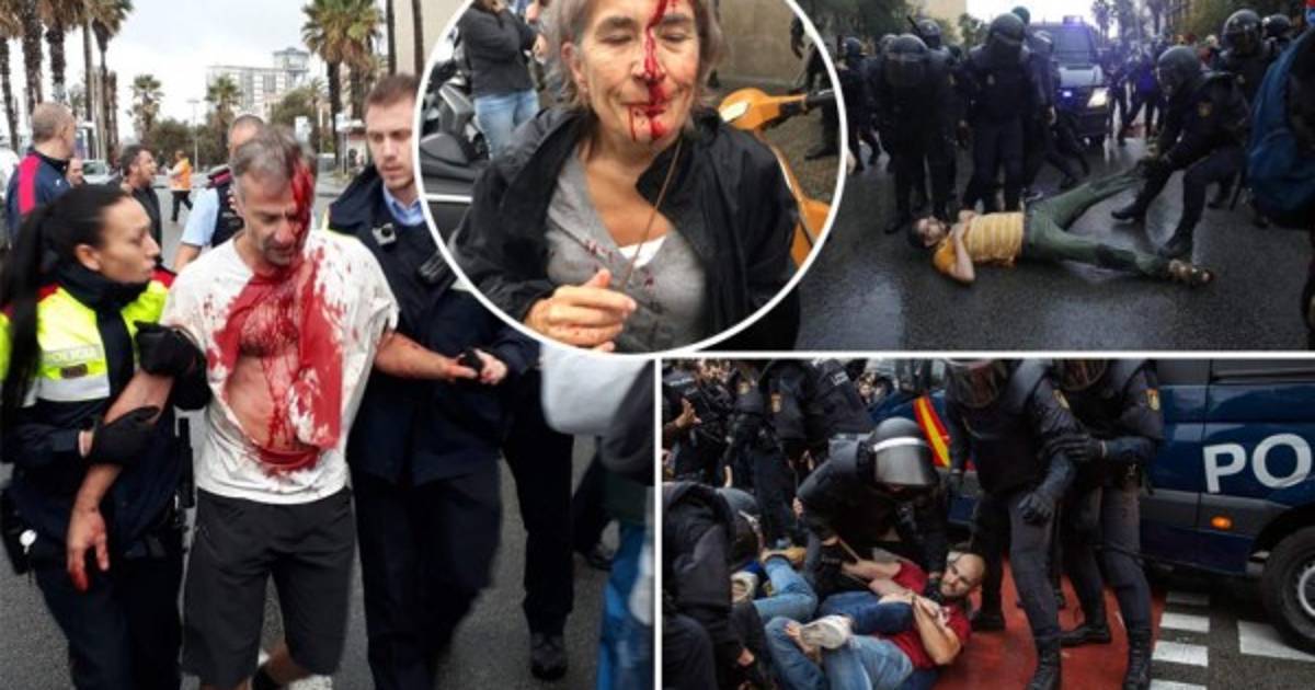 6 / 17A golpe de porras y pelotas de goma, la policía española intervino este domingo en Cataluña para impedir el referéndum sobre la independencia. -