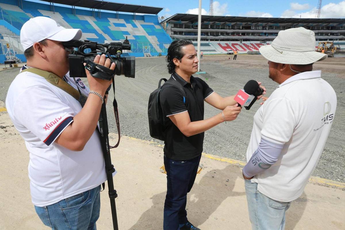 7 / 15“Ahorita estamos en la etapa de nivelación de la arena, posteriormente viene lo que es el sembrado de la grama para poder empezar a tener ese crecimiento y en pocos días tener la grama completa. Lo que es el drenaje y el sistema de riego ya están terminado”, comentó Aldo Sotelo, arquitecto y uno de los que ha estado a cargo de los trabajos.