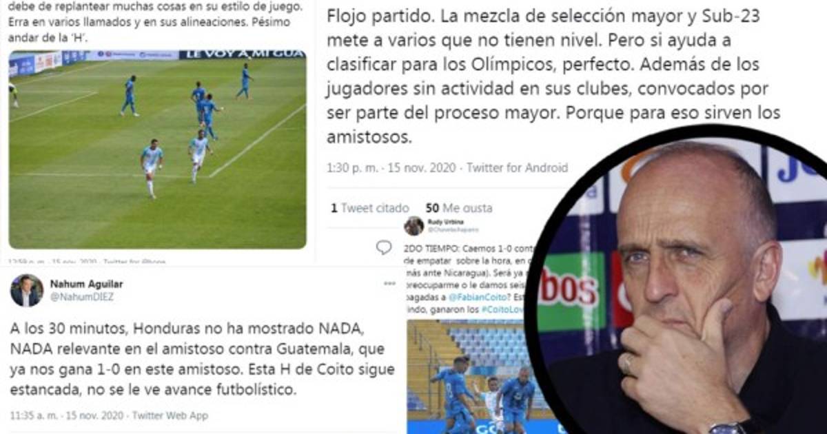 1 / 14Honduras ha sido criticada tras perder ante Guatemala en Ciudad de Guatemala y Fabián Coito está en el ojo del huracán, repasaremos algunos comentarios que se dieron en redes sociales donde se tilda de culpable al técnico de la Bicolor, algunos incluso piden su salida. -