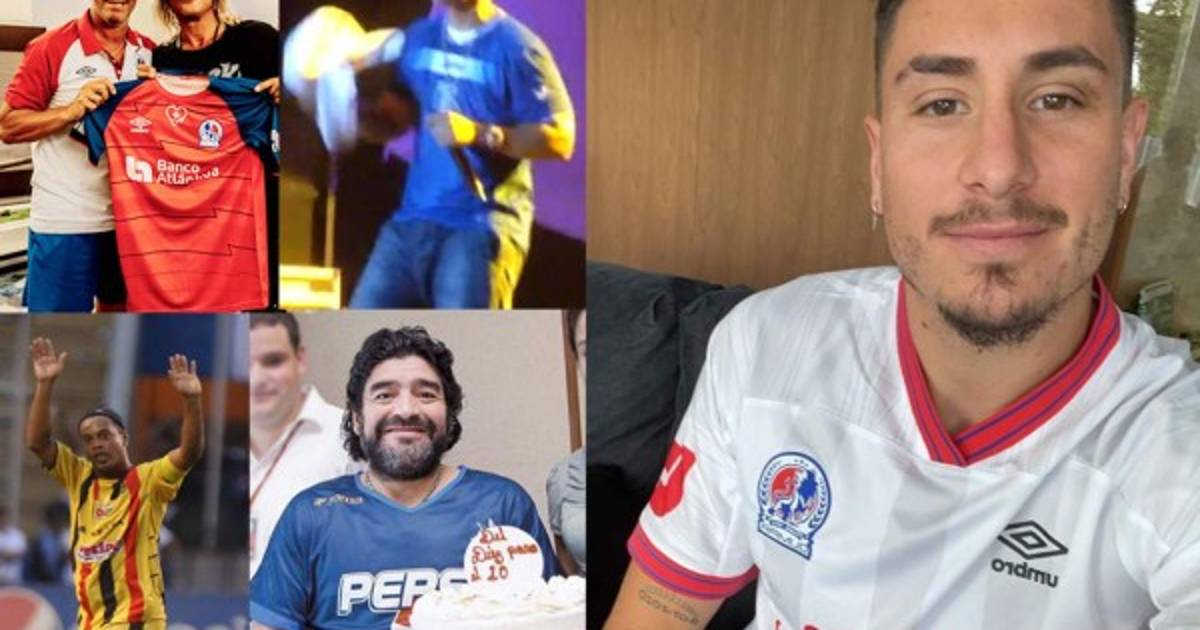 1 / 31El futbolista del Atlético de Madrid y el exgoleador argentino Claudio Caniggia, han sido los últimos famosos en lucir camisas de clubes hondureños como la del Olimpia; pero han sido muchos los que se han puesto alguna desde Maradona, Pelé, Ricardo Arjona... entre otros. -