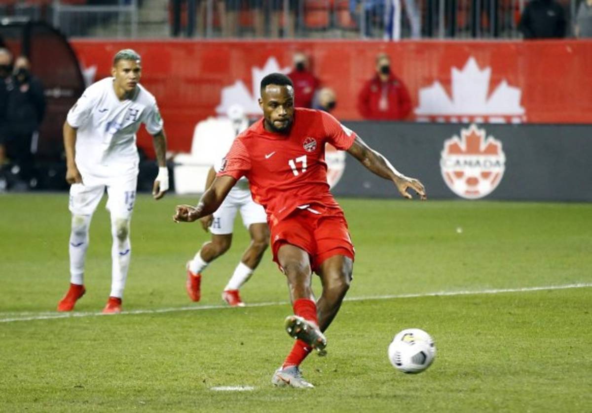 9 / 19Cyle Larin castigó a Honduras con un potente lanzamiento penal que no pudo adivinar Luis López, el portero catracho. -