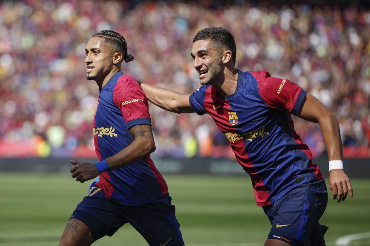 4 / 34El técnico germano confió en los mismos jugadores que sufrieron la dura eliminación europea en el Giuseppe Meazza. Así salió el Barcelona: Szczesny; Eric García, Cubarsí, Iñigo Martínez, Gerard Martín; Pedri, De Jong; Lamine Yamal, Olmo, Raphinha y Ferran Torres. EF
