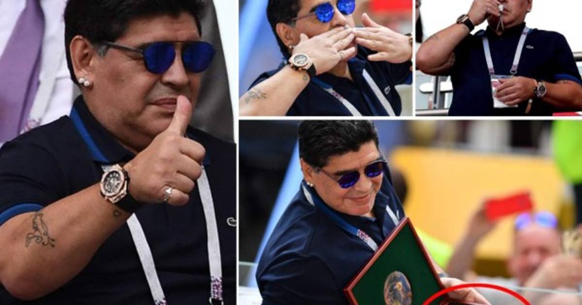 Luego que la FIFA le advirtiera que podría ser vetado de los estadios del Mundial de Rusia 2018, el argentino Diego Maradona se mostró sobrio en el palco de honor y mucho más tranquilo que en los primeros tres juegos.