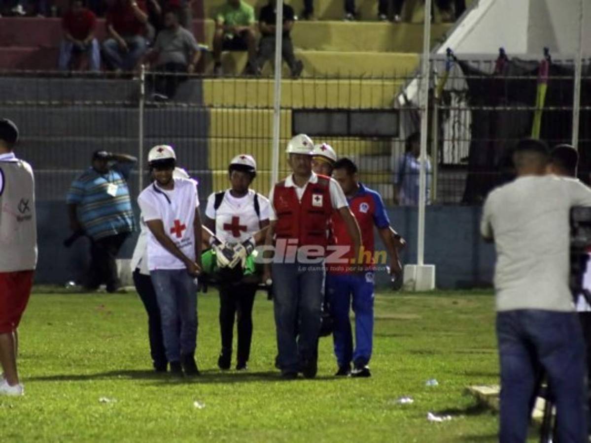 1 / 18Te mostramos las imágenes del portero olimpista Harold Fonseca quien sufrió una grave lesión de rodilla en La Ceiba, también hubo otros dos lesionados. Hoy Emilio Izaguirre apareció con un detalle en su camisa dedicada a su mujer Virginia Varela. Fotografía: Edgar Witty/Samuel Zelaya, Jhony Magallanes y Ronal Aceituno -