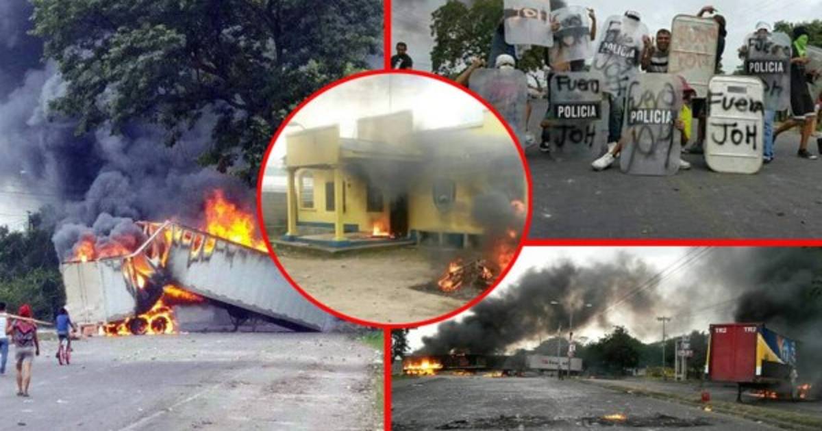 En El Progreso, Yoro incendiaron una posta. En Villanueva quemaron dos rastras y en Choloma sabotearon postes del tendido eléctrico en las fuertes protestas
