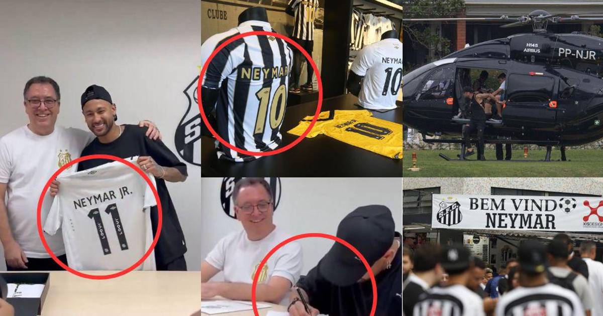 Neymar revoluciona Brasil: llegó en helicóptero, su problema en la firma y ¿por qué tiene el dorsal 11 y 10 en la camiseta de Santos?