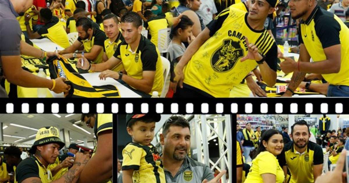 1 / 14El Real España fue arropado por sus aficionados con quienes compartieron en la tienda Diunsa. Los jugadores se mostraron tranquilos previo al choque ante Olimpia. -