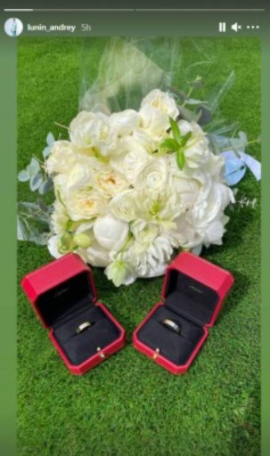 5 / 16Cabe mencionar que la feliz pareja se casó en Madrid en un acto civil y algunos compañeros de Lunin lo felicitaron por dar este importante paso. -
