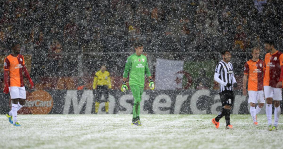 1 / 16Galatasaray turco y la Juventus italiana, interrumpido en la primera parte con empate a cero por una fuerte nevada . -