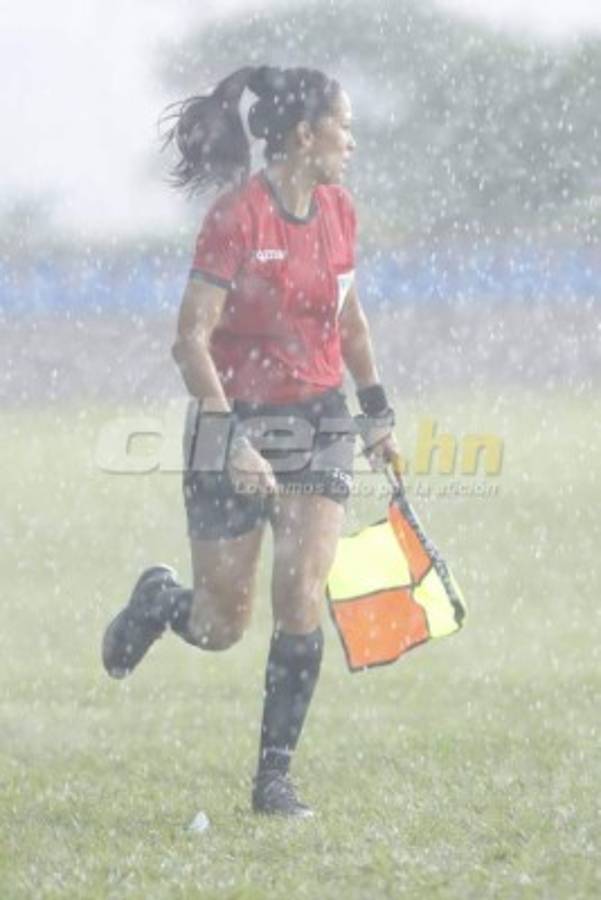13 / 20La árbitra Shirley Perelló estuvo al pendiente de cada detalle del juego, inclusive cuando comenzó a caer el aguacero. -