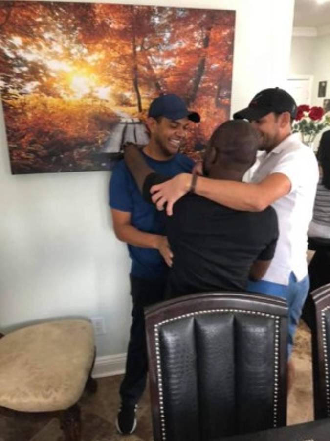 Amado Guevara al reencontrarse con Milton 'Tyson' Núñez y José Luis 'Flaco' Pineda.