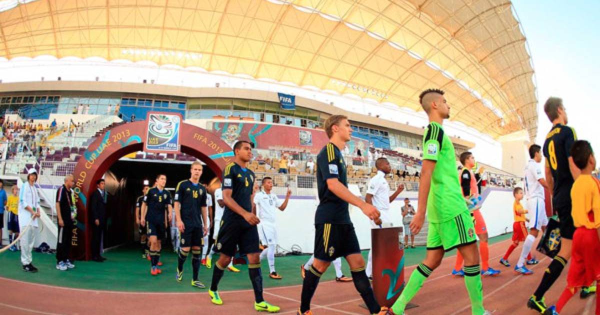 1 / 19Las selecciones juveniles de Honduras y Suecia momentos de la salida antes del inicio del juego. -