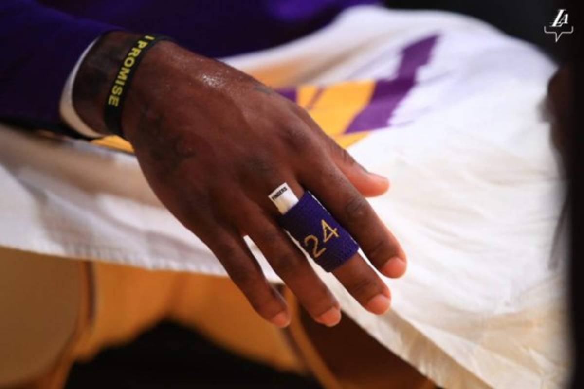 26 / 27LeBron James llevó el número de Kobe Bryant en sus implementos deportivos durante el partido que perdieron ante Portland. -