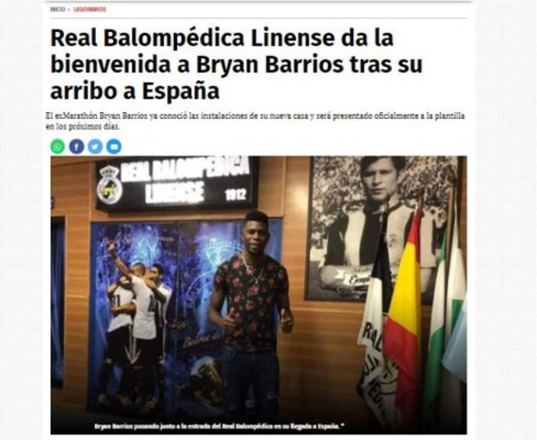 14 / 1613.Bryan Barrios viajó a España para cerrar su fichaje por el Real Balompédica Linense. -