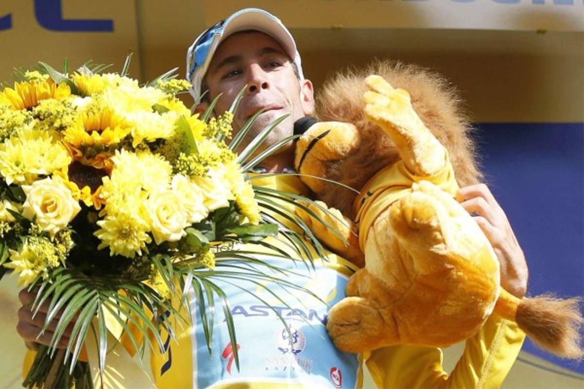 7 / 22Vincenzo Nibali de Italia celebra en el podio con la camiseta amarilla de líder general después de la 20 ª etapa de la 101 ª Tour de Francia. Foto EFE -