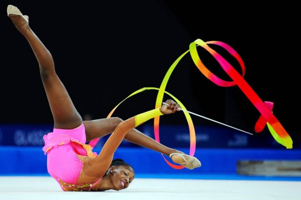 12 / 22Gracia Legote de Sudáfrica compite en gimnasia rítmica última cinta individuales de las mujeres en el SECC Recinto durante los Juegos de la Commonwealth de 2014 en Glasgow, Escocia. AFP. -