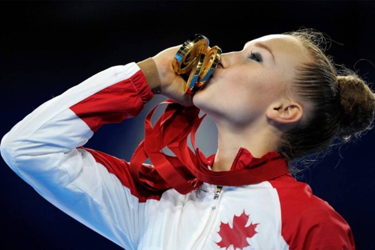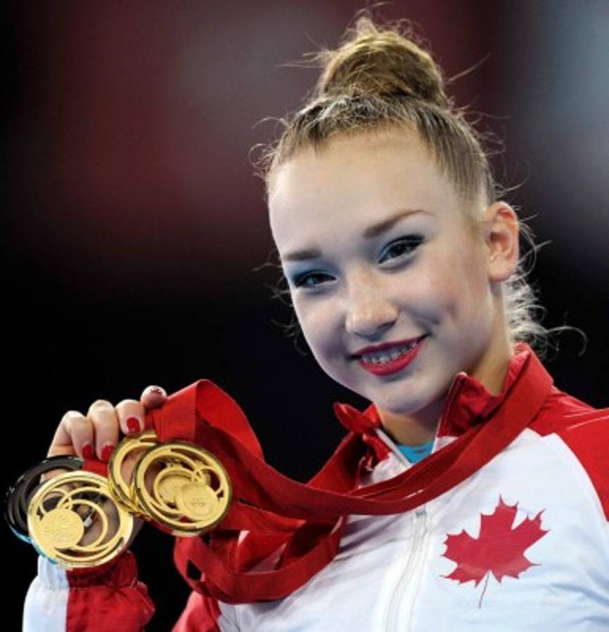 13 / 22Canadá Patricia Bezzoubenko con sus tres medallas de oro y una de bronce, de las finales de gimnasia rítmica individual en los Juegos de la Commonwealth 2014 en Glasgow 26 de julio 2014. AFP . -
