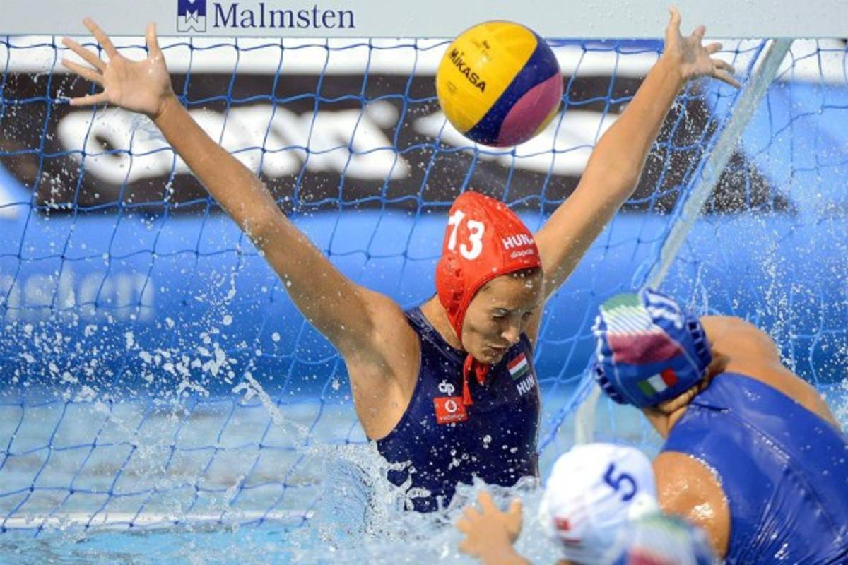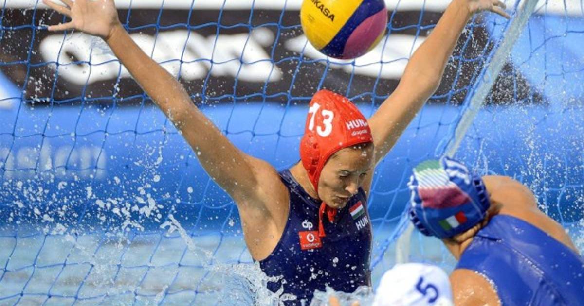 1 / 22Aleksandra Cotti de Italia ha marcado gol ante la portero Edina Gangl de Hungría durante el partido por la medalla de bronce de las mujeres entre Hungría e Italia en el Campeonato de Europa de waterpolo de la Hajos Alfred piscina en Budapest, Hungría, Foto EFE -