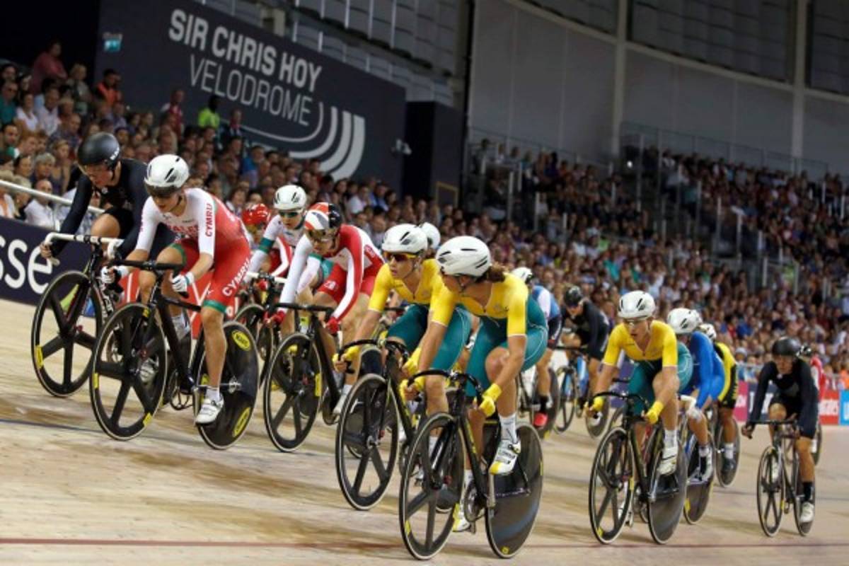 17 / 22Corredores compiten en la carrera scratch 10 kilometros de mujer en el en el Velódromo Sir Chris, durante los Juegos de la Commonwealth de 2014 en Glasgow, Escocia, AFP. -