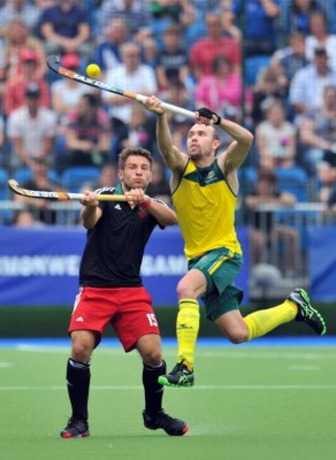 19 / 22Mateo Swann de Australia compite con Liam Brignull de Gales durante la preliminar partido de hockey sobre césped de los hombres entre Australia y Gales en Glasgow Centro Nacional de Hockey en los Juegos de la Commonwealth de 2014. AFP -