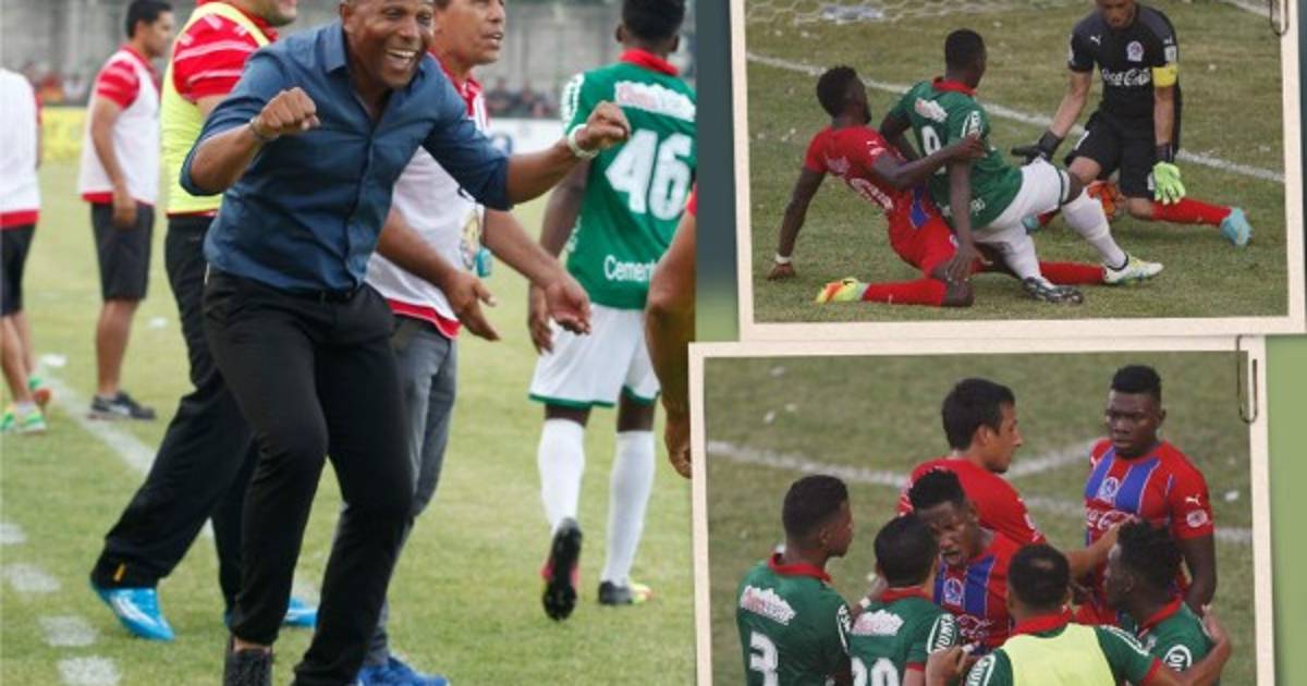 2 / 17Charles Córdoba marcó el primer gol del Marathón y lo festejó fundiéndose en un abrazo con el técnico Carlos Pavón. -