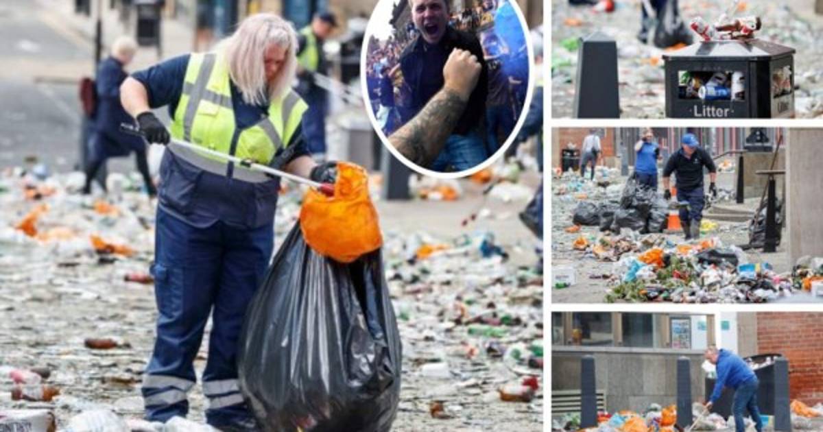 3 / 12Los fanáticos del Leeds celebraban salir del ascenso tras 16 años en él, pero dejaron las calles llenas de basura. Y este lunes se han recogido todos los restos. -