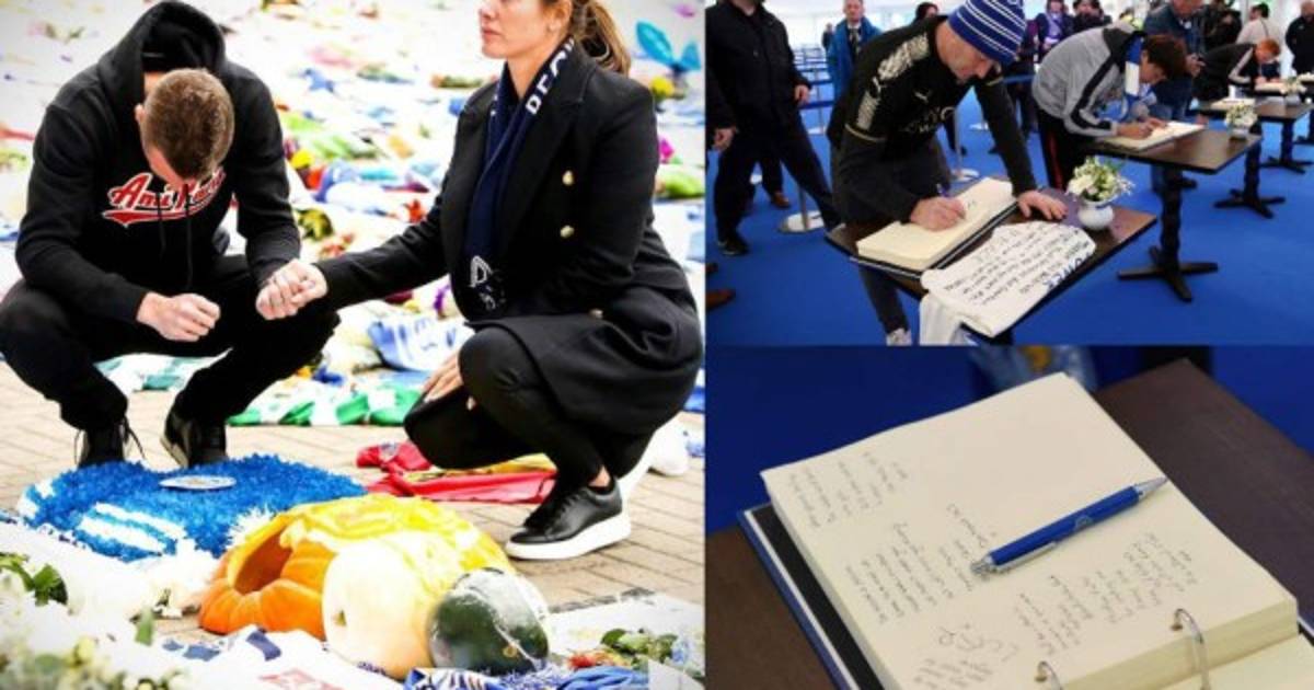 Hinchas firmaron hoy un libro de condolencias establecido afuera del King Power Stadium de Leicester City. Vardy se hizo presente con su esposa.