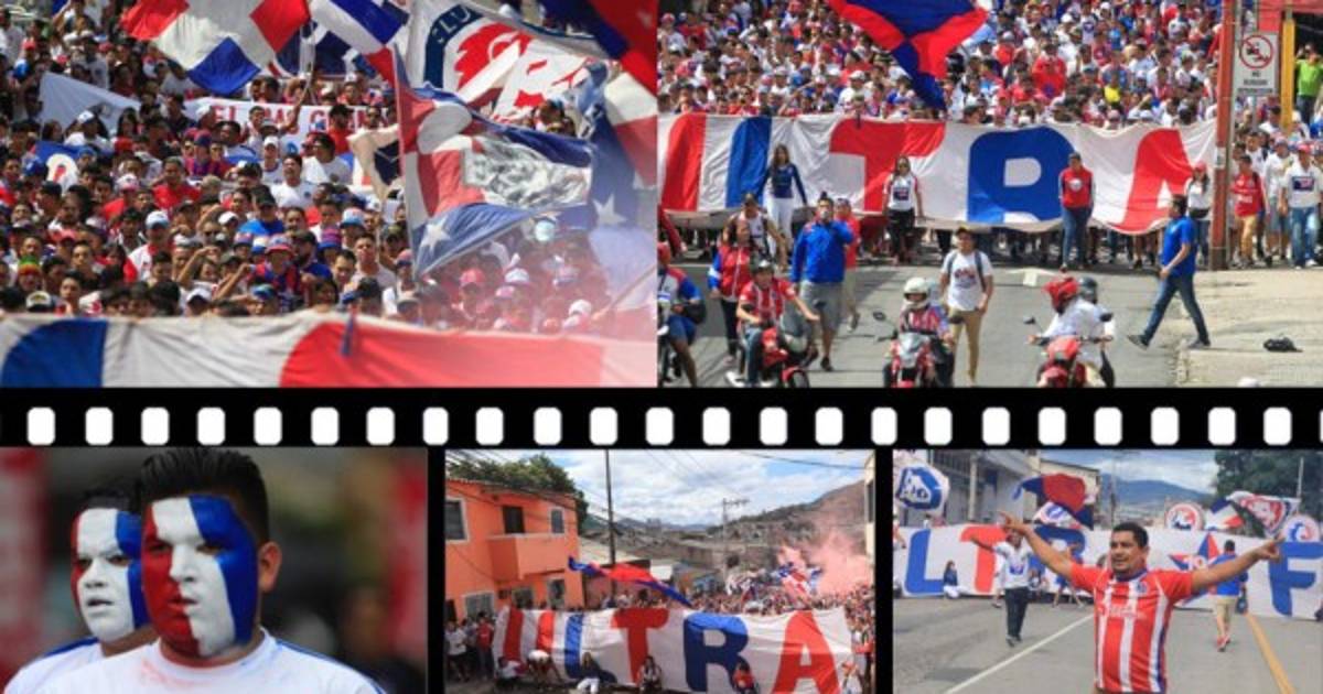 2 / 10La barra de Olimpia en gran masa se traslado desde el parque central de Tegucigalpa rumbo al estadio Nacional. -