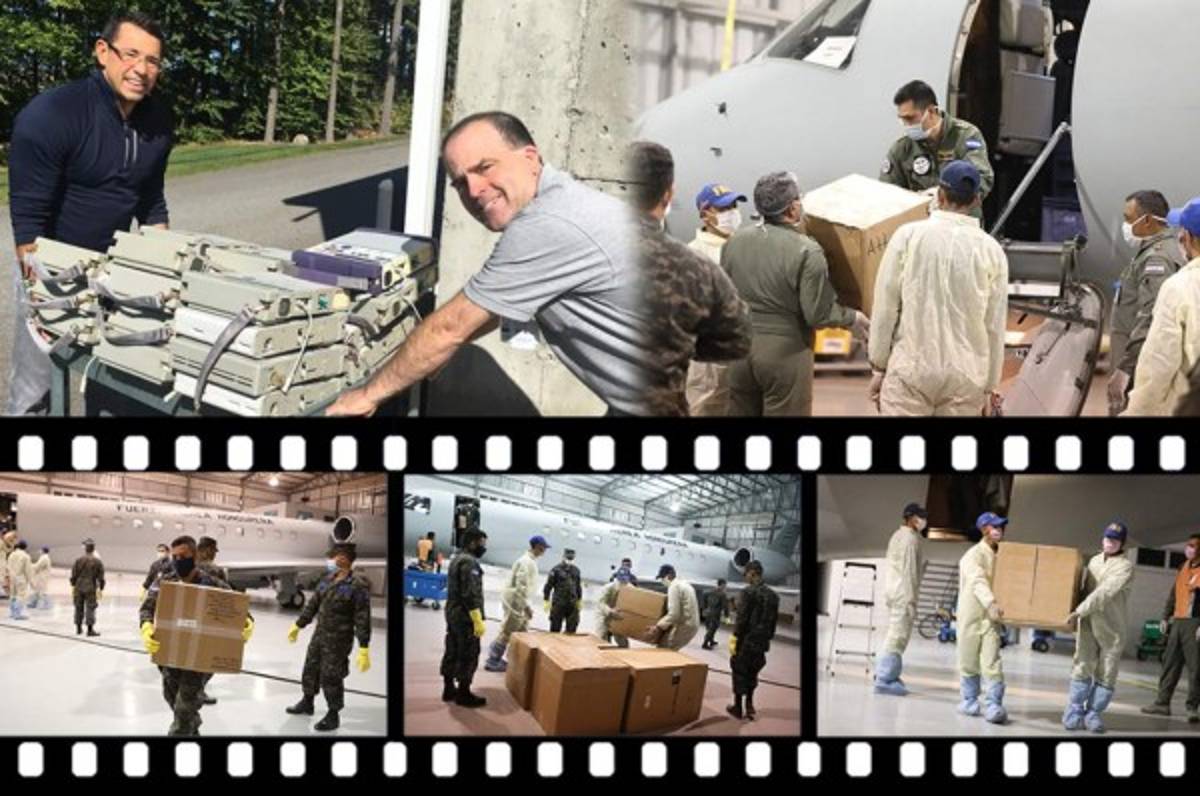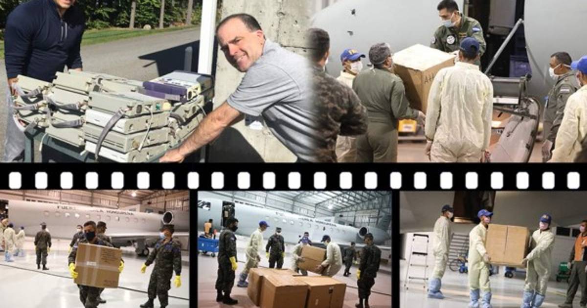 3 / 14Un avión de la Fuerza Aérea hondureña llegó este jueves procedente de Nueva York con el cargamento de equipo médico donado por el doctor Castellanos. -