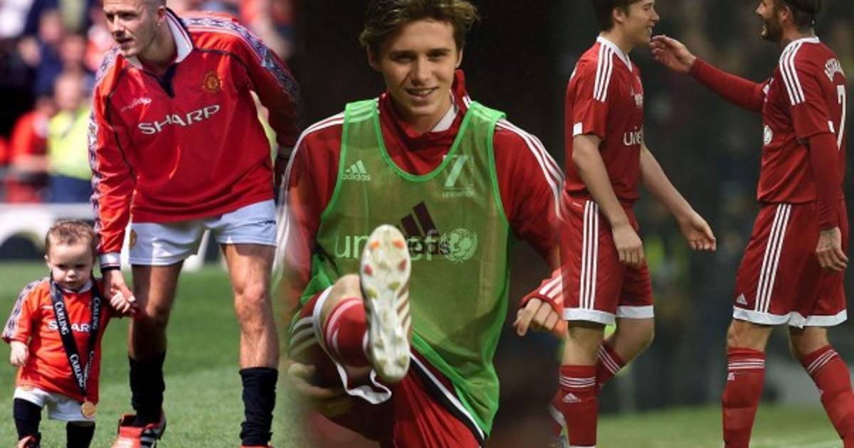 2 / 22David Beckham fue sustituido por Brooklyn, su hijo, en Match For Childrens disputado en Old Trafford, estadio en el que cuando era un bebé, fue paseado por su padre cuando militaba en Manchester United. Aquí paseó también cuando militaba en el Galaxy. -
