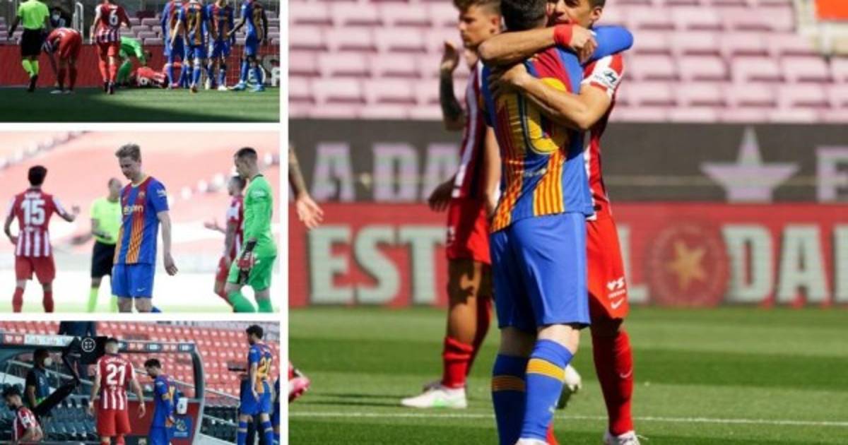 Abrazo sincero entre Messi y Luis Suárez antes del inicio del partido donde Barcelona y Atlético empataron sin goles.