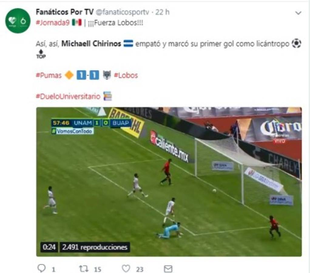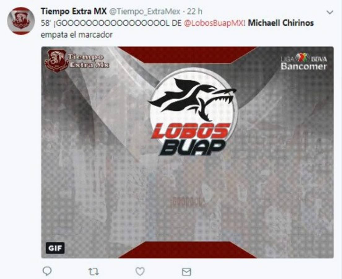 El atacante hondureño Michaell Chirinos se estrenó como goleador en el fútbol de México con Lobos Buap ante Pumas.