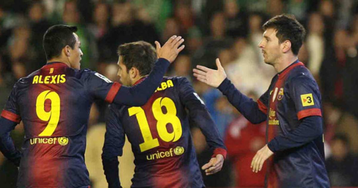 1 / 13Barcelona's Lionel Messi from Argentina, right, celebrates with teammate Alexis Sanchez, left, after scoring against Betis during their La Liga soccer match at the Benito Villamarin stadium, in Seville, Spain on Sunday, Dec. 9, 2012. (AP Photo/Angel Fernandez) -