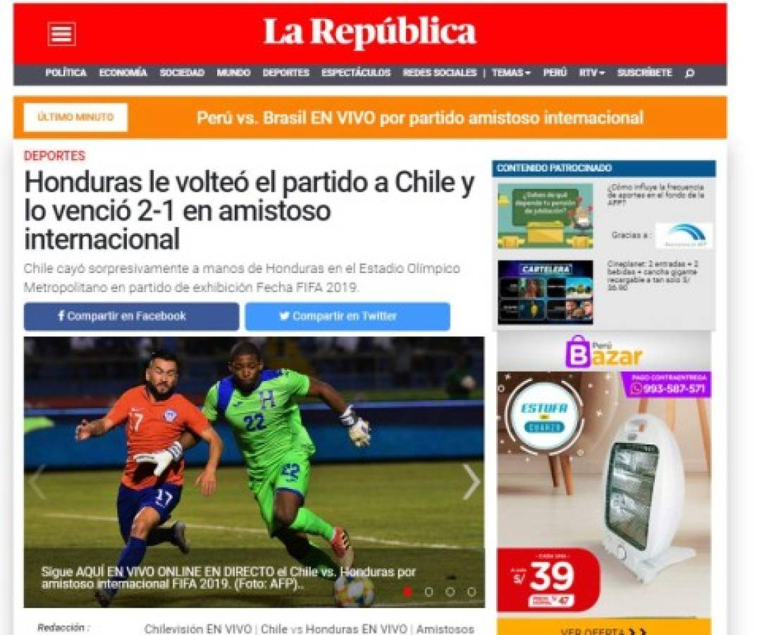 Los medios de Chile no están contentos luego de que su Selección fuera superada 2-1 por Honduras en el estadio Olímpico de San Pedro Sula.