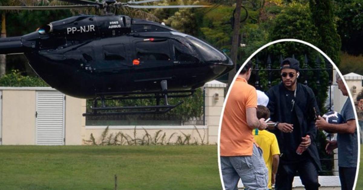 3 / 13Fiel a su estilo 'bling-bling', el delantero del París SG llegó al complejo Granja Comary en Teresópolis a bordo de un gran helicóptero negro con las iniciales 'NJR' (para Neymar Junior), observó un fotógrafo de la AFP. -