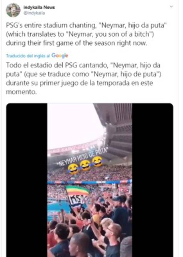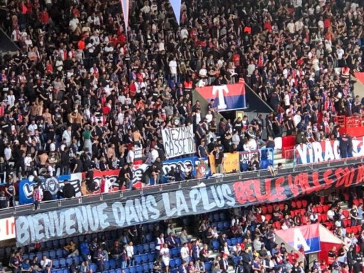 La afición del PSG no se guardó nada y atacó a Neymar en el primer partido de la Ligue 1. 'Neymar fuera del PSG'.