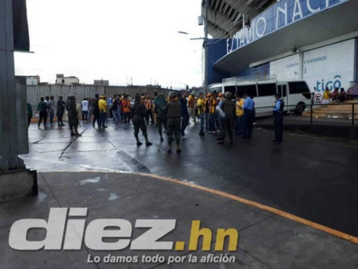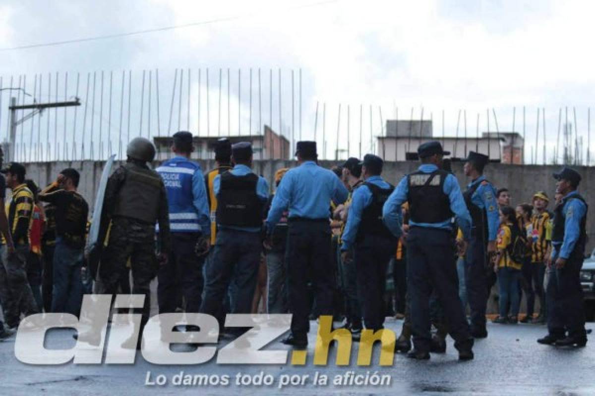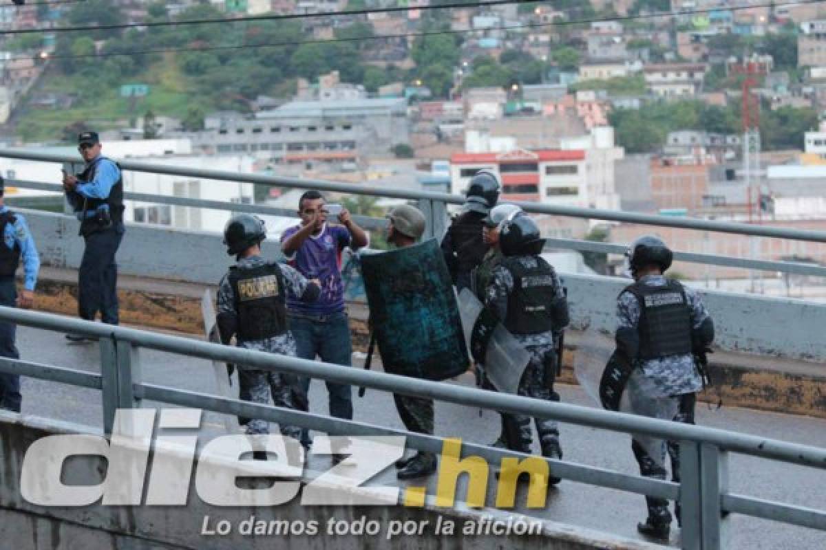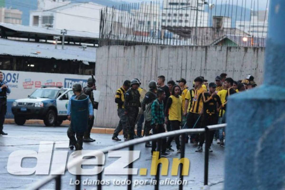 Mientras el Olimpia goleaba al Real España en la cancha del estadio Nacional, en las afueras las barras de ambos equipos se encontraban, pero la policía llegó a tiempo.