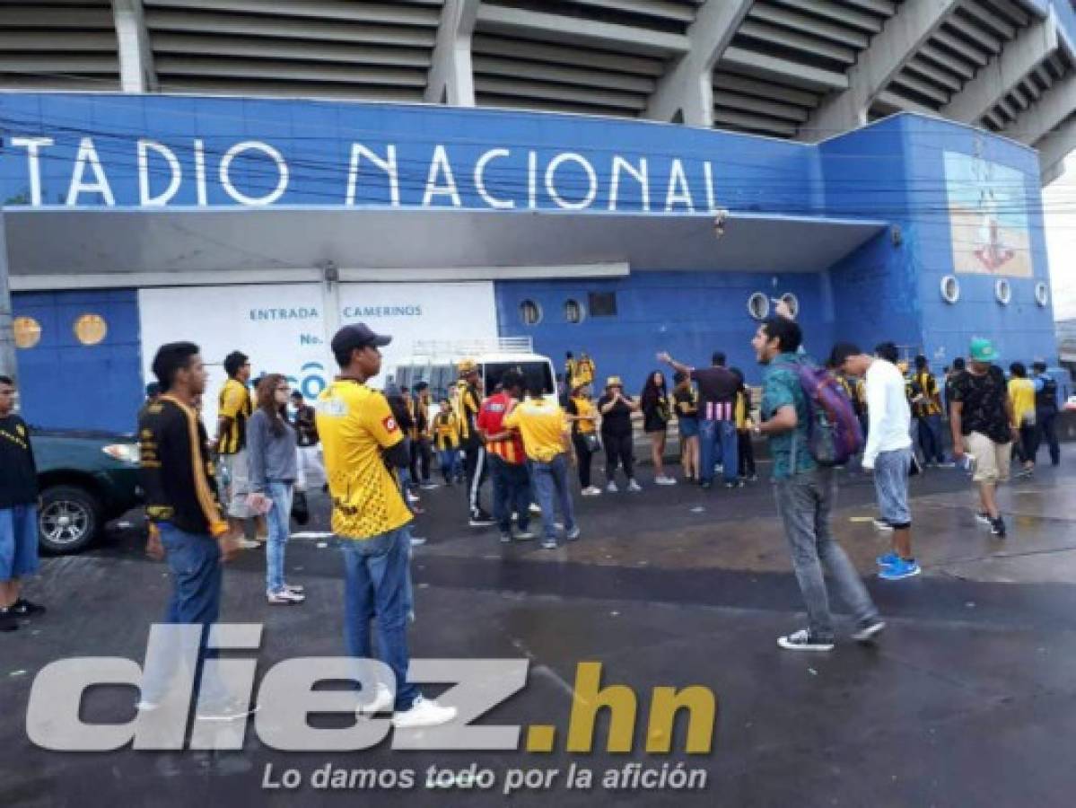 3 / 16Las barras de Olimpia y Real España se estaban enfrentando en las afueras del estadio Nacional. -