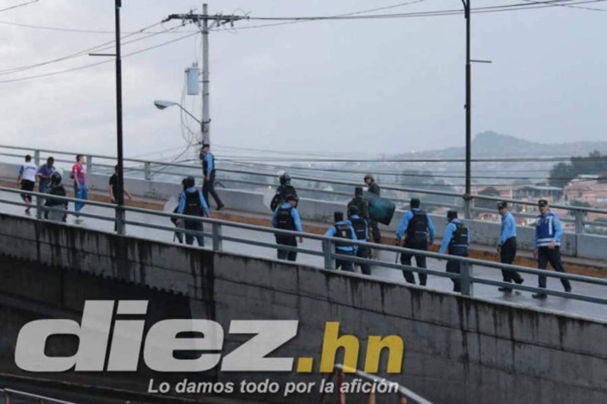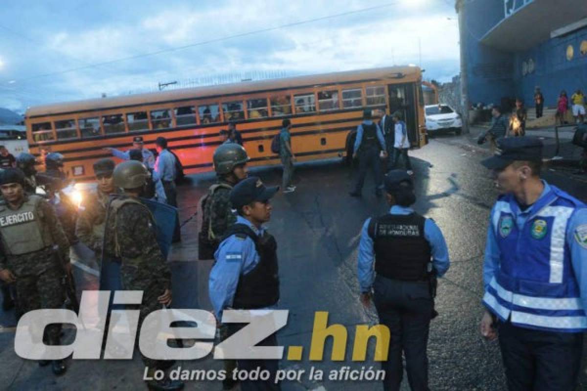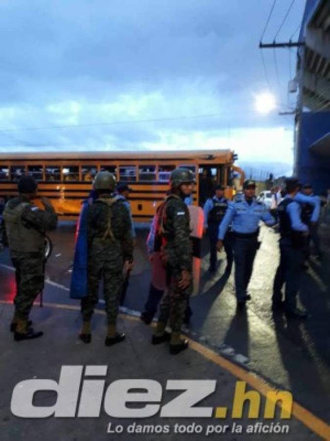 13 / 16Luego la seguridad hizo que los aficionados del Real España subieran al bus que los trasladara a San Pedro Sula. -