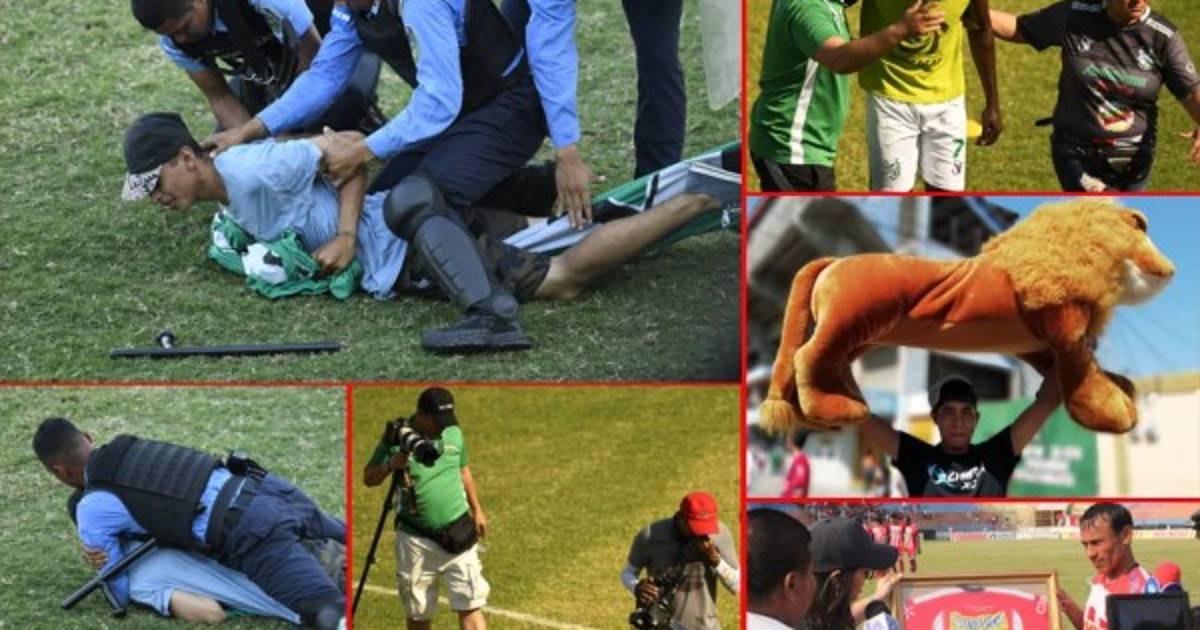 8 / 18Al final la policía controló todo y arrestó al sujeto que armó el descontrol por unos momentos en la despedida de Edgard Álvarez del fútbol. -