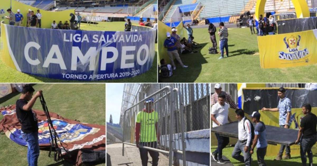 2 / 12Desde horas tempranas de este domingo en el estadio Nacional de Tegucigalpa se empezaron los trabajos del escenario para premiar al campeón. -