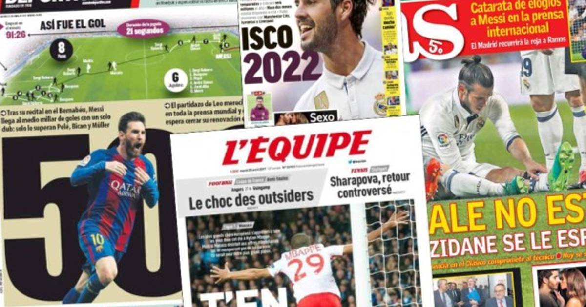1 / 12Messi siguen llevándose los reflectores en las portadas en los diarios deportivos; Real Madrid busca amarrar a Isco por 5 años más. -
