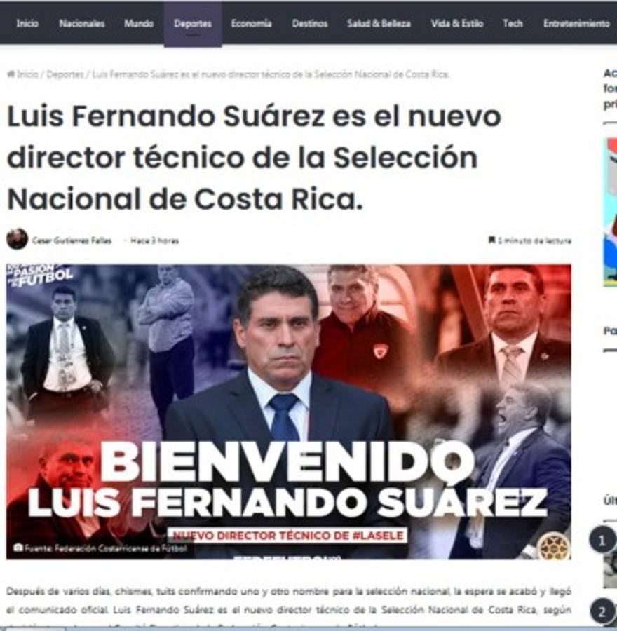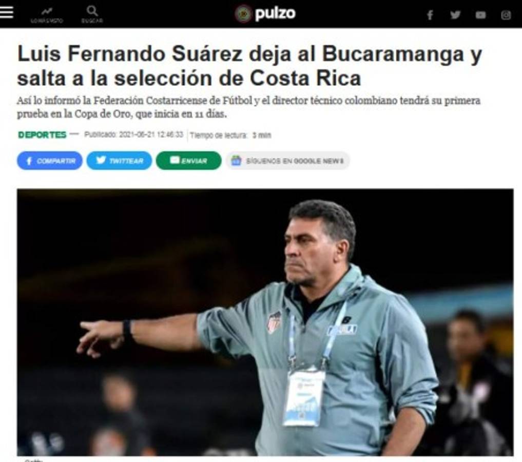 7 / 17Evergol - El portal costarricense destacó que la federación no tuvo que pagar cláusula de rescisión al Atlético Bucaramanga por Luis Fernando Suárez. -