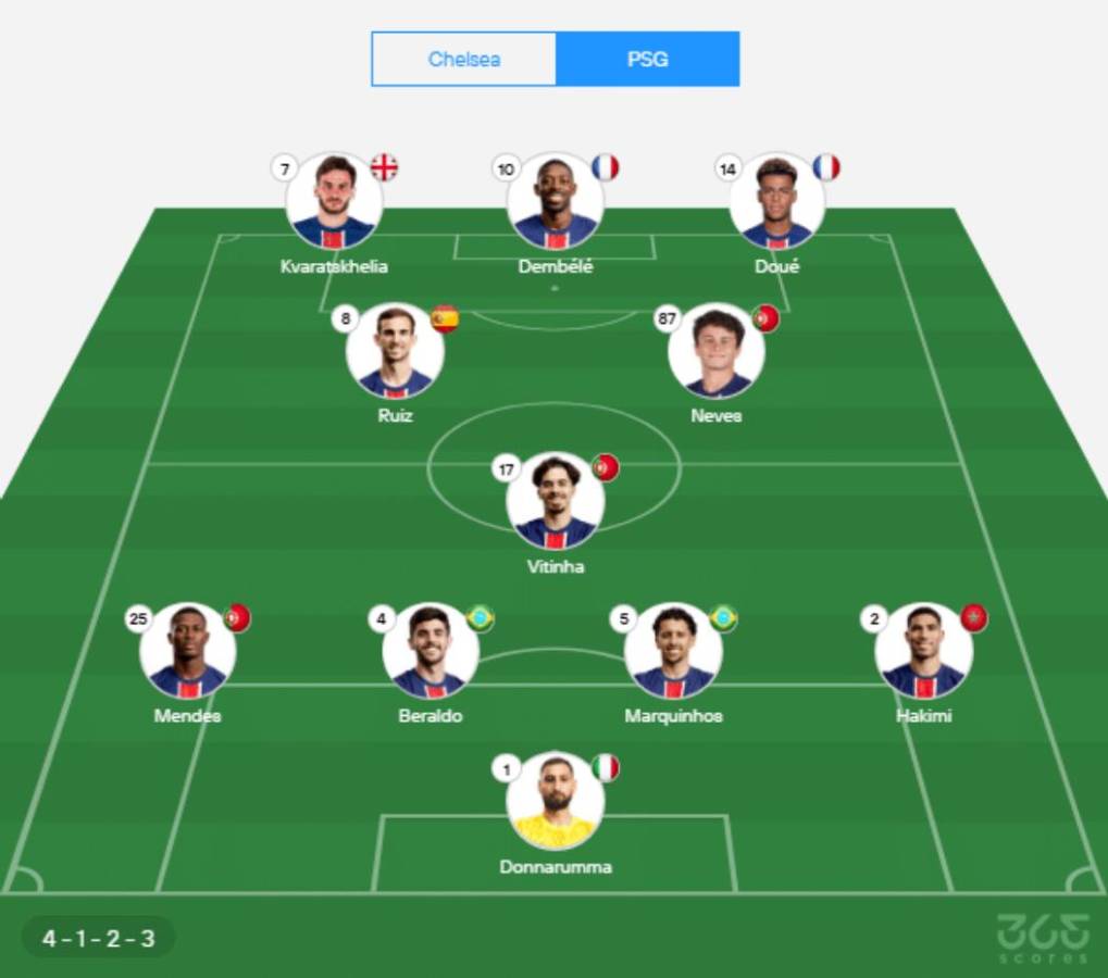 14 / 18Este será el XI titular de Luis Enrique para derrotar al Chelsea y quedarse con el título del Mundial de Clubes 2025. (Foto Cortesía: 365 Scores)