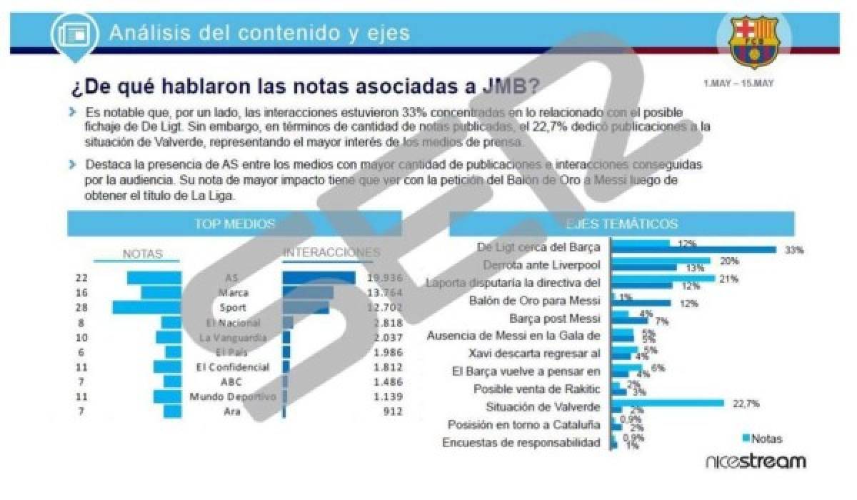 5 / 37Este es el documento de 36 páginas que deja al descubierto a Bartomeu de haber contratado esta empresa que limpiaba su imagen como presidente del Barcelona y que dañaban a jugadores, exjugadores y adversarios. -