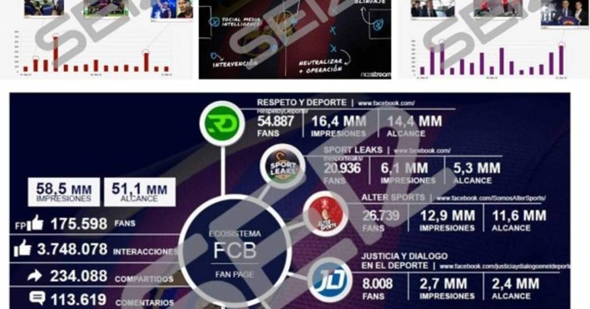 10 / 37Las seis cuentas de Facebook que gestiona I3 Ventures son las siguientes. Més que un club (66.000 seguidores), Respeto y Deporte (56.000), Alter Sports (27.000), Sport Leaks (21.000), Justicia y Diálogo en el Deporte (8.500) y Jaume, un film de terror (5.000). -
