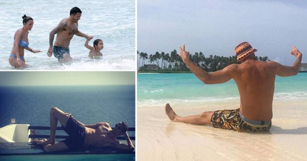 Xabi Alonso: Tras retirarse de la selección de España en 2014, Xabi Alonso pasa en la playa Formentera con su esposa Nagore Aramburu.