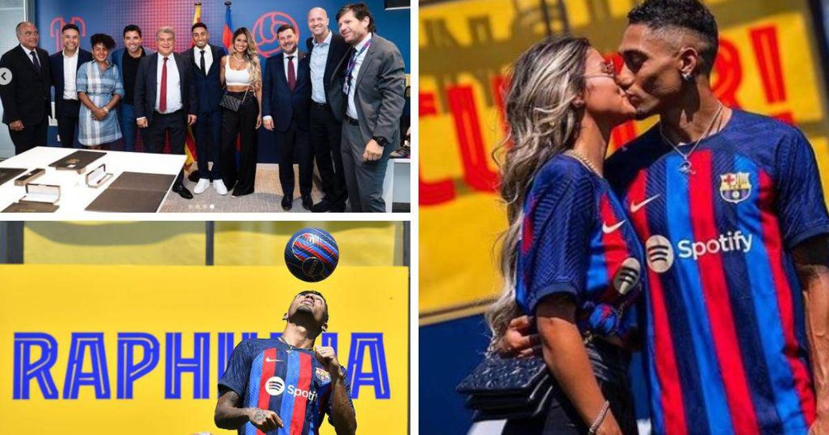 Así fue la presentación de Raphinha en Barcelona: Su hermosa mujer deslumbró, curioso momento con Laporta ¿y su dorsal?